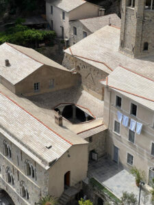 The legend tells that in the VIII century, a group of faithful fled from the Arab invasion of Spain. They were carrying the ashes of Saint Fruttuoso. To their surprise, an angel appeared in a dream and told them about a place in a hidden cove in the Ligurian Sea where they could find refuge and lay the Saint’s relics. Guided and protected by the angel from the storms at sea, they reached out the bay and with the angel’s help, they defeated the dragon who possessed the bay. They also built a monastery where the ashes are still preserved today, inside the main altar of the Abbey.