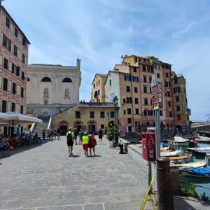Next to the castle stands the “Basilica of Santa Maria Assunta,” where you can find the 19th century wooden statue of the Assunta made by Bernardo Schiaffino. In the small harbor, yachts are a rare sighting, but you can find small fishing boats and tourist-line ferry boats there. In the small square, the smell of bread and hot focaccia is mixed with the scent of seaweed, fish and the coconut fishing nets which were once made by the hands of women and sailors from the lisca plant, which thrives on the mountain of Portofino still today.