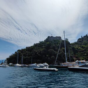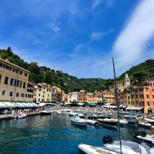 A dream, an inspiration, so much charm, and beauty steeped in the crystal-clear Ligurian sea. The beautiful Piazzetta is shaped like a moon arch, with colored houses once inhabited by fishermen, sailors, and lace-makers. The magical bay opens up like an embrace, with luxury yachts and fishing boats moored in the harbor. Tourists take selfies or enjoy an aperitif in the dock bar, taste fresh ice cream, buy souvenirs, or enjoy shopping around. The choice is yours, but a walk to the lighthouse is a must, where you can admire the vastness of the sea and the infinite horizon, or enjoy the most beautiful red sunset on a summer evening.