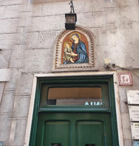 Such a  beautiful and strong city was yet made  fragile by the presence of the seaside. It certainly  needed to be protected by a maternal and loving hand who would be able to guide and protect the city in difficult times and also  to spread joy and generosity during happy times. It is told that on 2 July 1557, the  Madonna appeared  to a humble farmer in the Ponzema mountain asking to be venerated up there. Since 1945 the coat of arms of Rapallo has been enriched with the monogram “M”  in honour of the Madonna. On the colorful facades of the houses the image of the Virgin Mary can be found just above the doors. In the place where Madonna appeared to the farmer we can now find the Sanctuary of Montallegro, a destination of pilgrimage and prayers for numerous devoted.